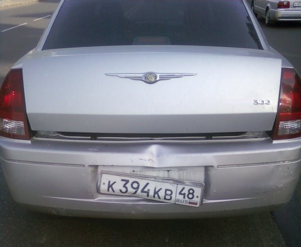Сегодня ездил с человеком, купившим мое авто, на переоформление (до этого он ездил по генералке, т.к. в связи с некоторыми проблемами не доплатил мне некую сумму при покупке) И надо ж было такому случиться, что по возвращении домой к заднице Крайслера решила на всей скорости пристыковаться Лада  Её отбросило! назад... Вот наше стыковочное место:  пострадал лишь бампер, багажник открыл я, чтобы найти саморез, дабы не потерять полуотскочивший госномер... а это - слепое чудо Российского автопрома: